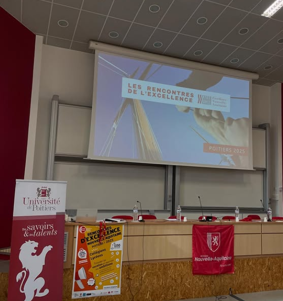 20 élèves de 3ème, quelques parents et Mme Sylvaine Moreau, professeure d’histoire-géographie et responsable du plan AVENIR ont passé l’après-midi sur le campus universitaire de Poitiers dans le cadre des rencontres de l’excellence.